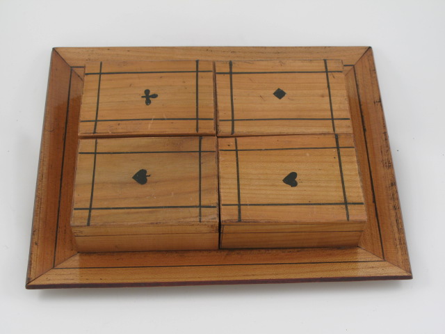 Vier doosjes met ivoren fiches (harten)
