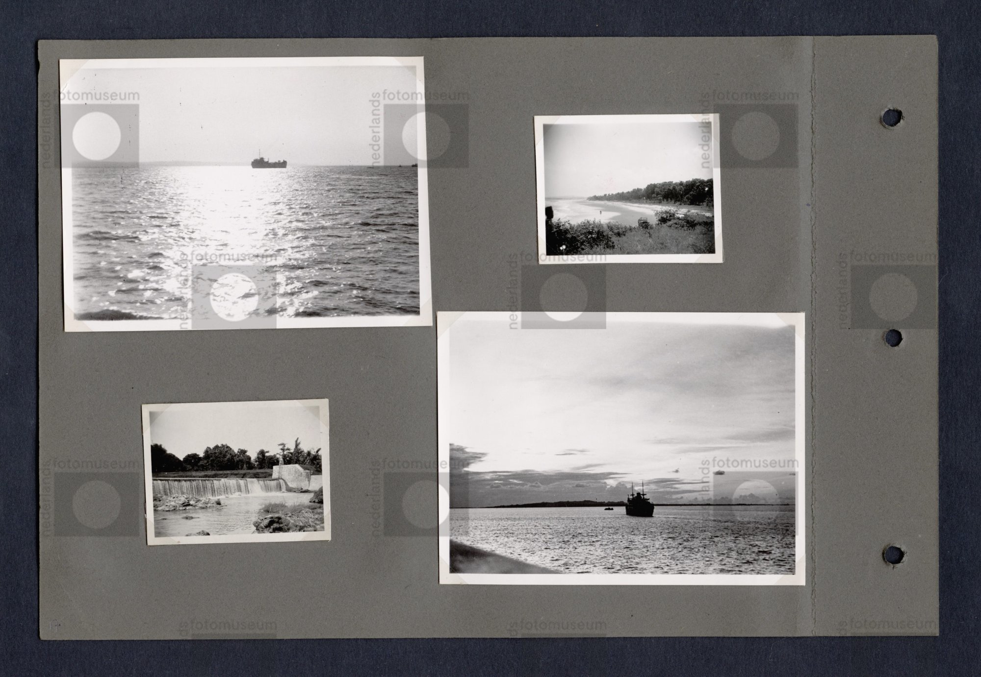 Waterval, strand en schip op zee bij Madura, p. 17 u...