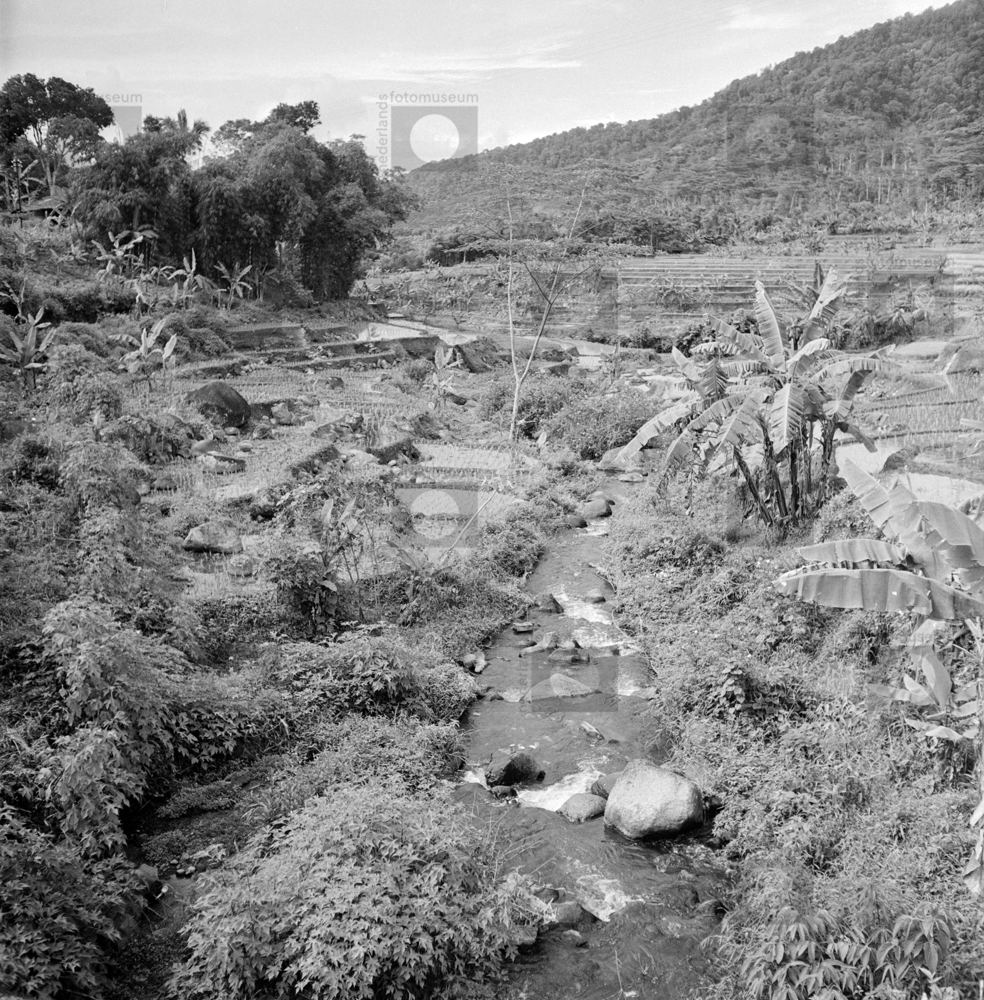 Landschap, waarin terrassen met moerasrijstvelden (s...