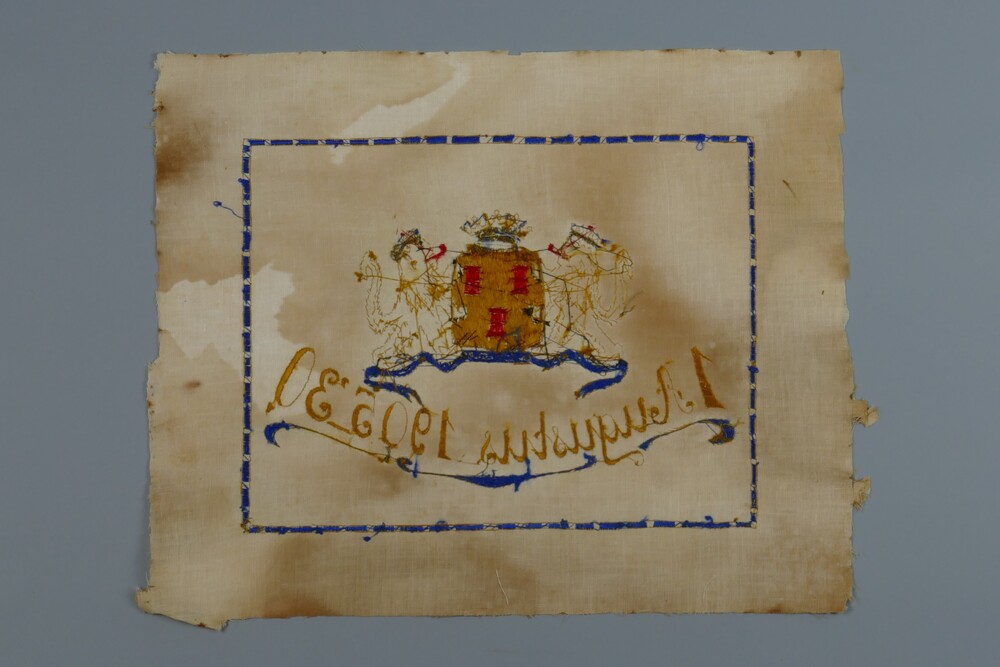 herdenkingsdoek voorstellende geborduurd wapen van C...