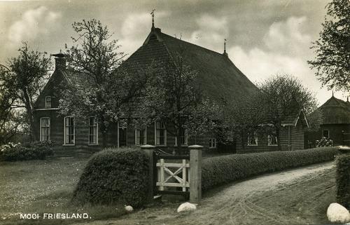 Prentbriefkaart in zwart-wit van een stelpboerderij ...