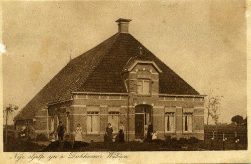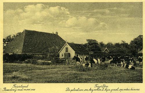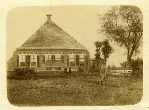 Prentbriefkaart in sepia van een stelpboerderij door...