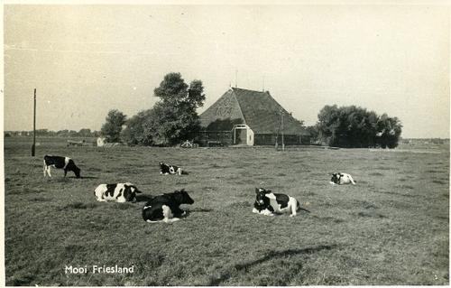 Prentbriefkaart in zwart-wit een grote stelpboerderi...