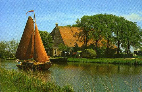 Prentbriefkaart in kleur van een stelpboerderij en e...