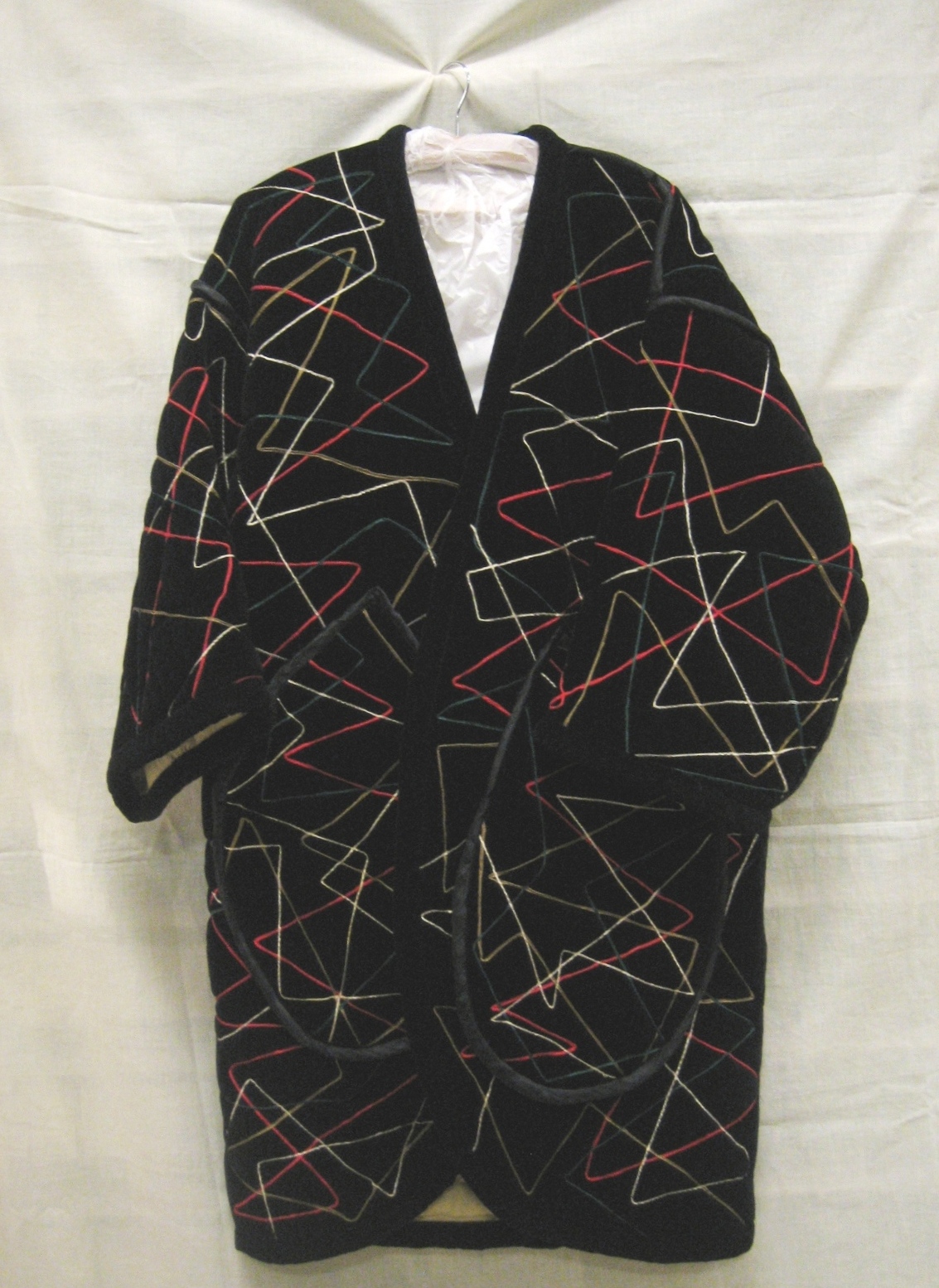 Mantel van zwart gewatteerd fluweel met abstracte de...