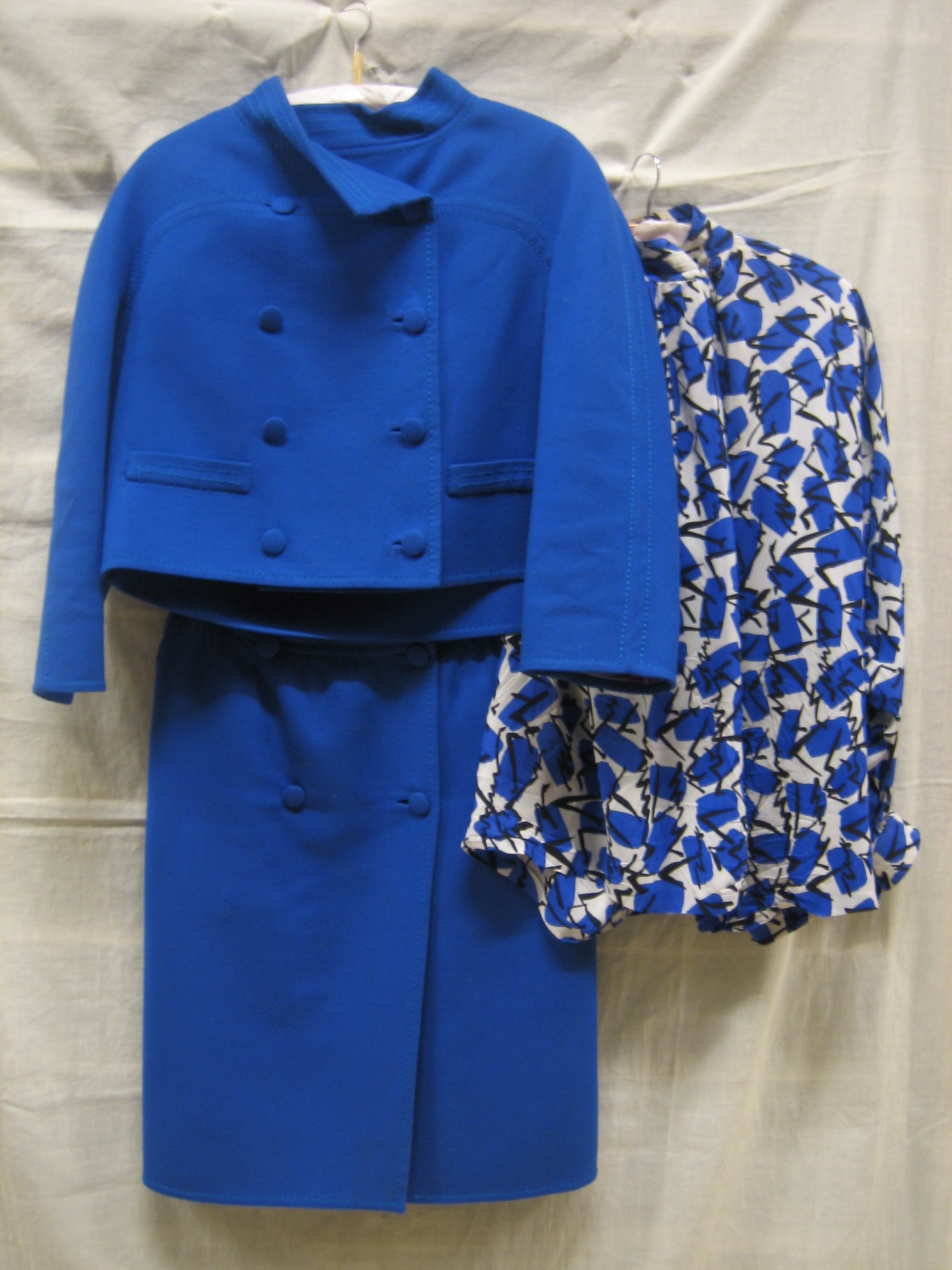 Ensemble, van azuurblauwe double face wol, bestaande...