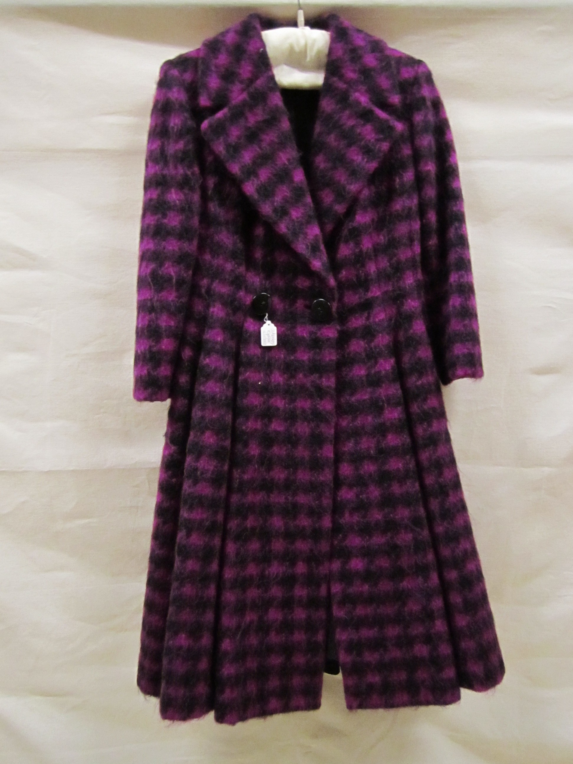Mantel van mohair (?) wol in paars en zwart pied-de-...