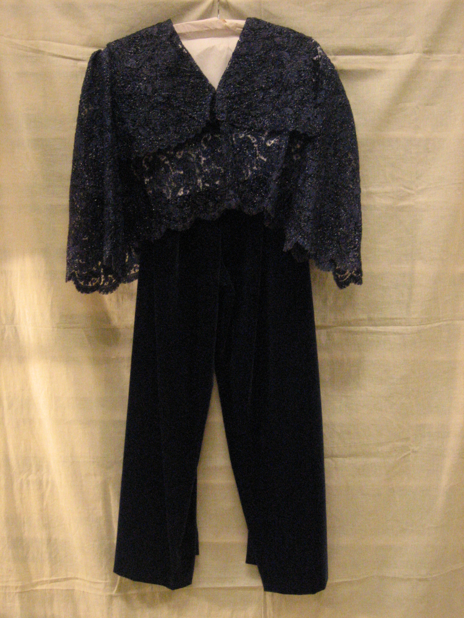 Avondensemble bestaande uit blouse van nachtblauw ma...