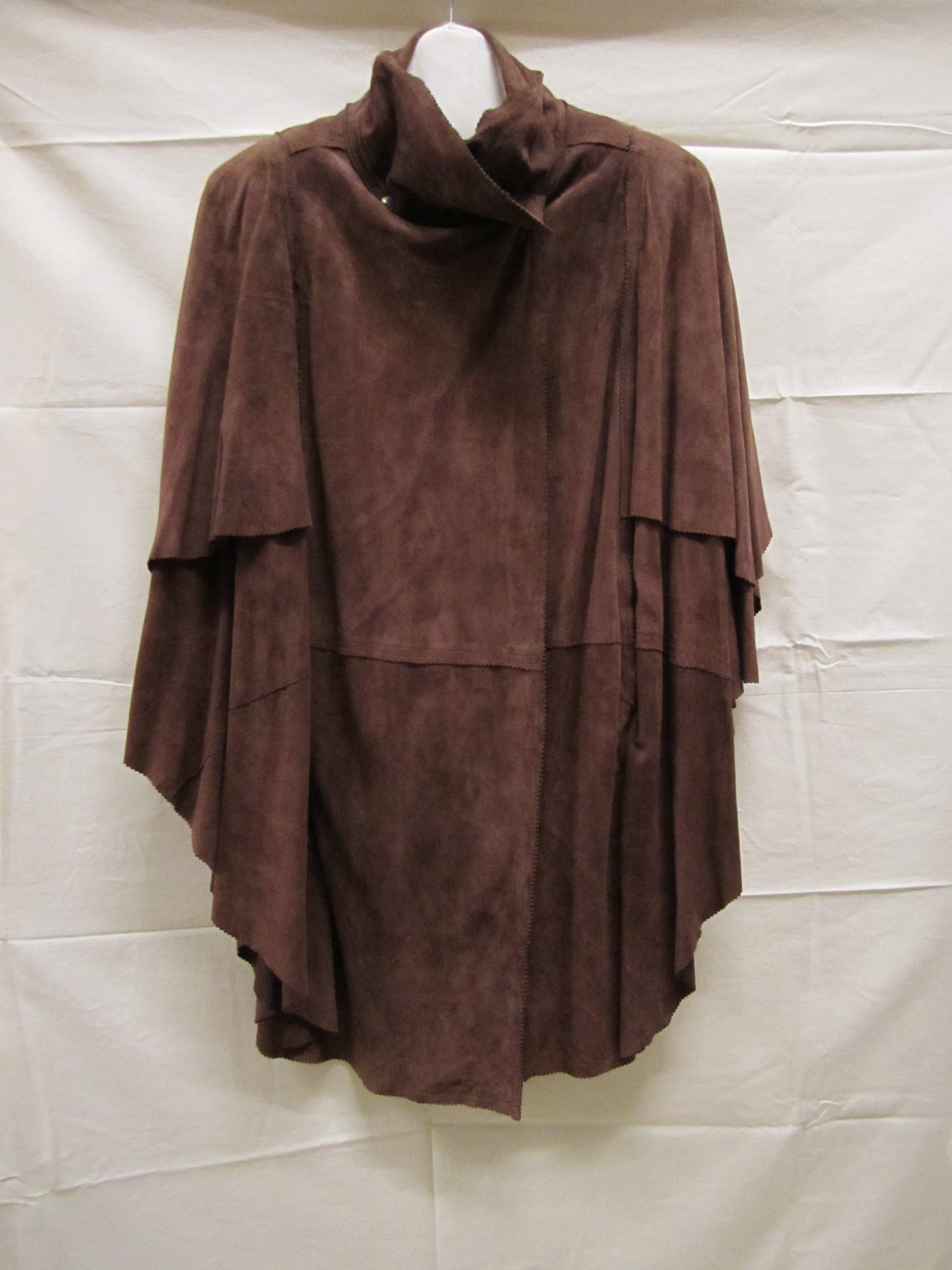 Cape van bruin suède kalfsleer met extra schouderstu...