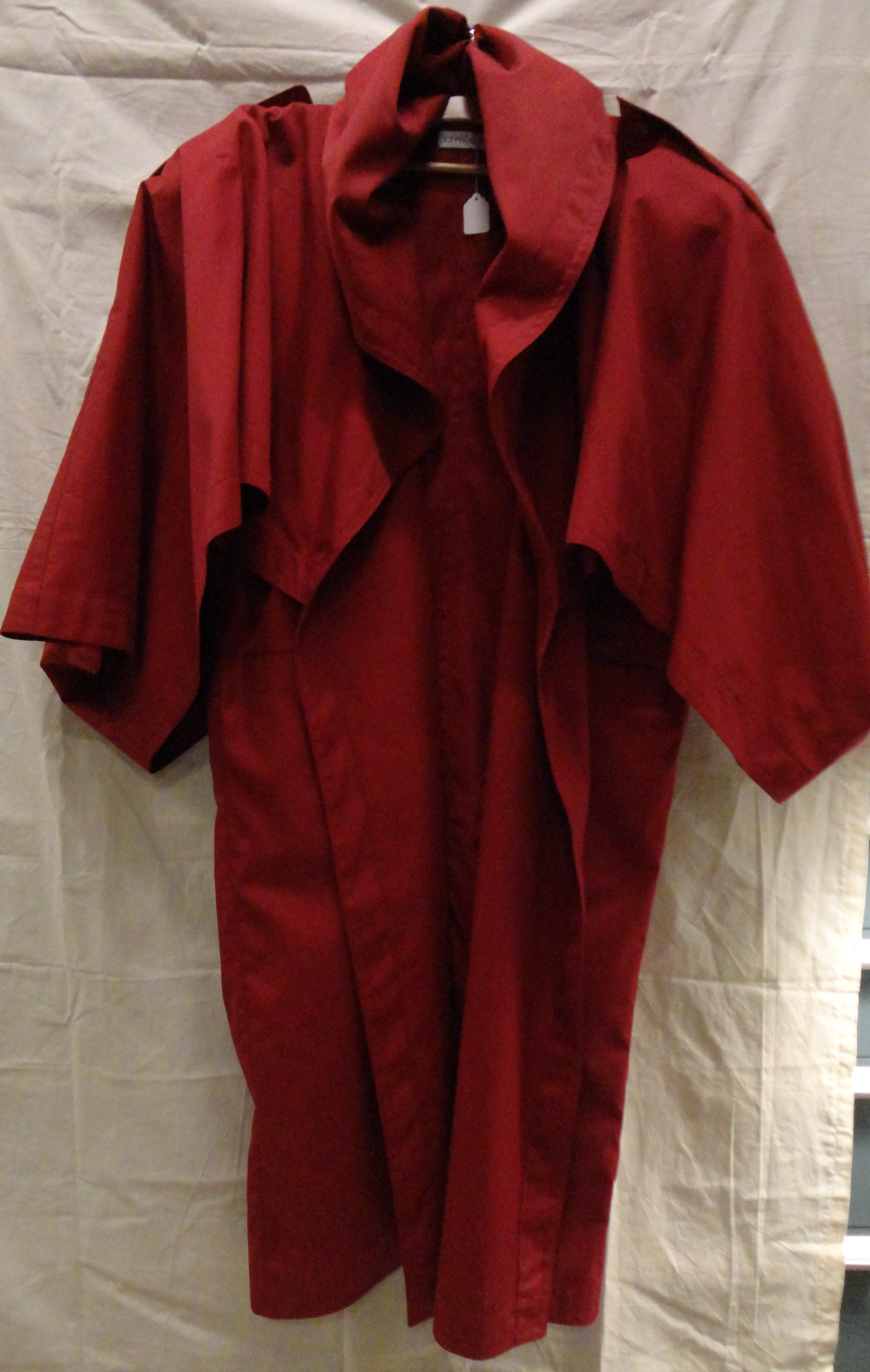 Mantel, gedragen als regencape, van rode gekeperde k...