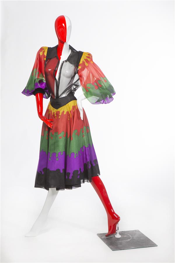 Ensemble van zijden voile bedrukt met een druppelpat...