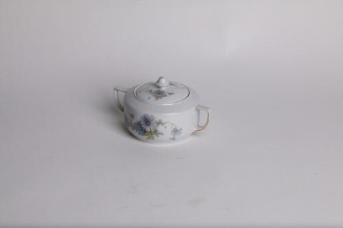 Suikerpot van porselein met blauw bloemmotief, Thoma...