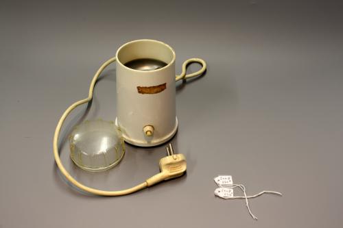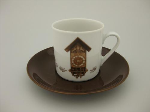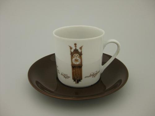 Kop en schotel met afbeelding stoeltjesklok anno 1750