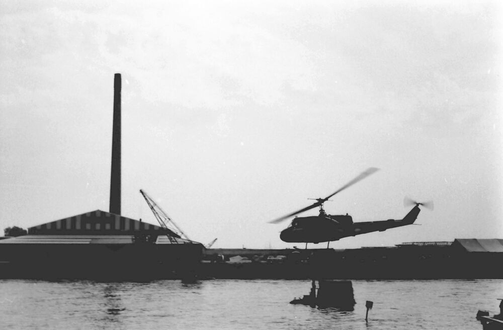 Agusta Bell 204B 221 V van 7 Squadron MLD low pass.