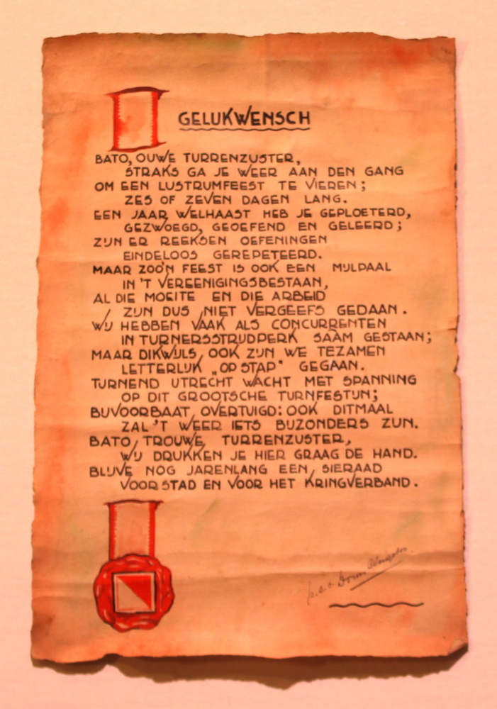 Brief, gelukwens op rijm bij jubileum Bato Utrecht