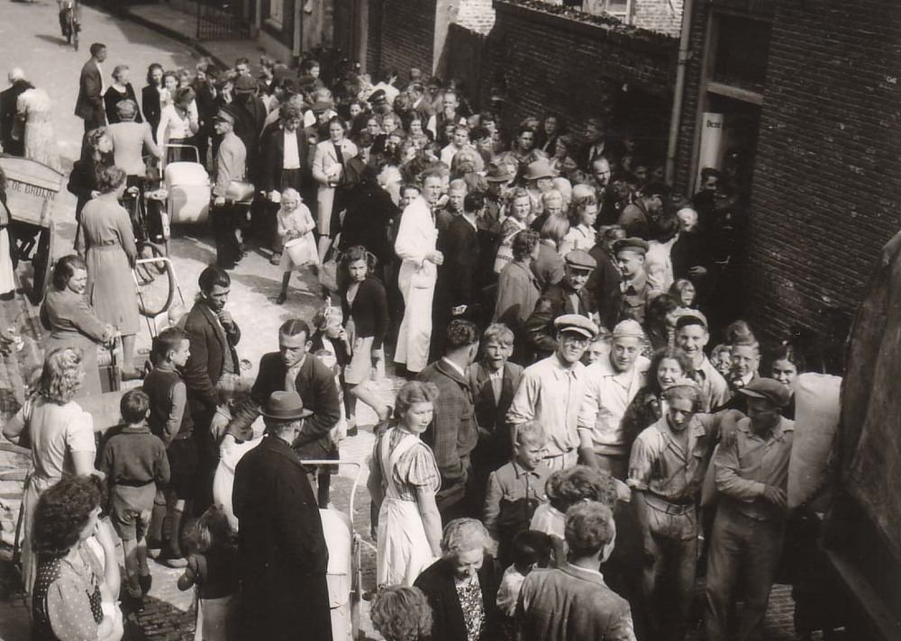 Meeluitdeling in de oliestraat.