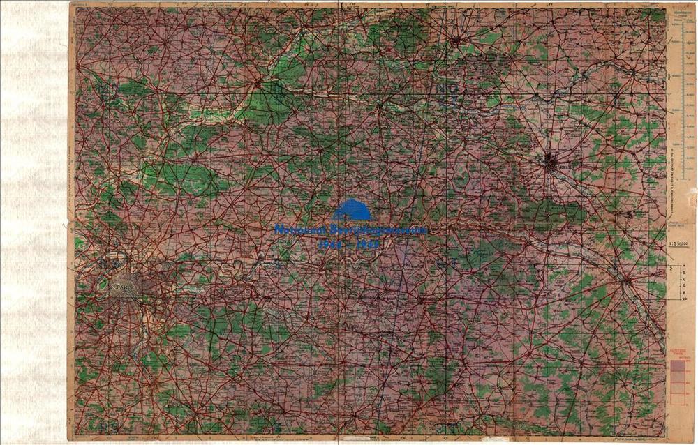 Stafkaart omgeving Parijs-Rheims, op linnen gedrukt