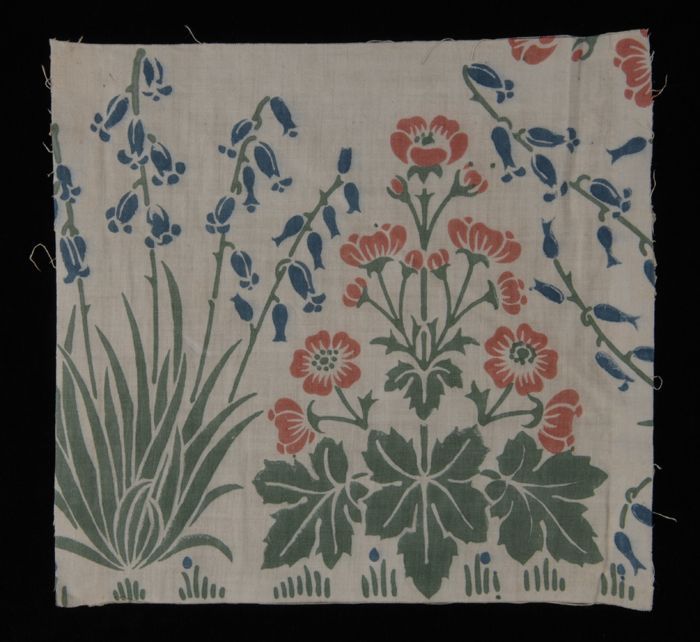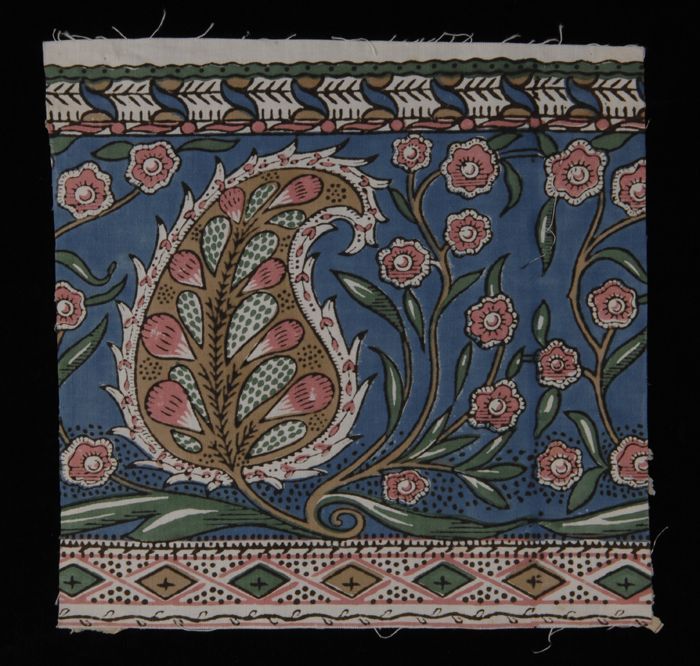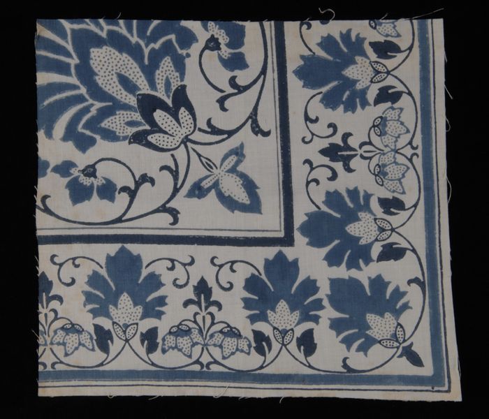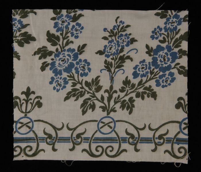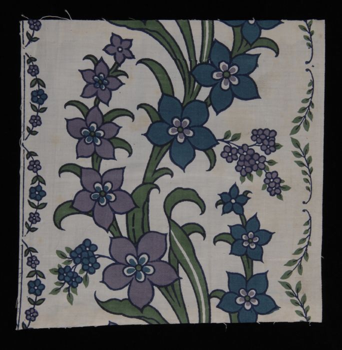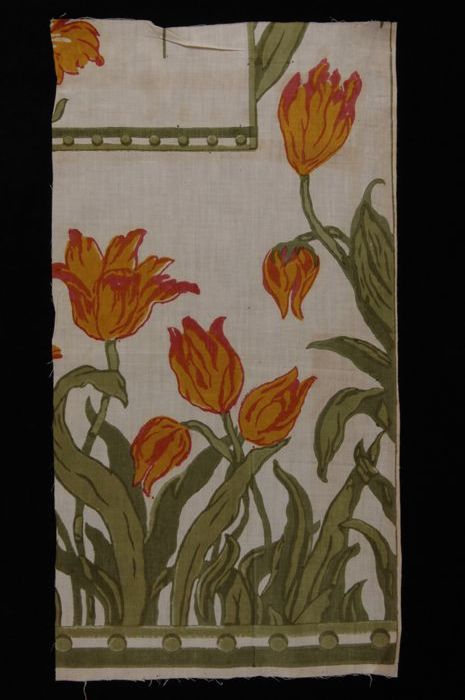 Stofstaal, lap katoen met dessin van tulpenrand, ged...