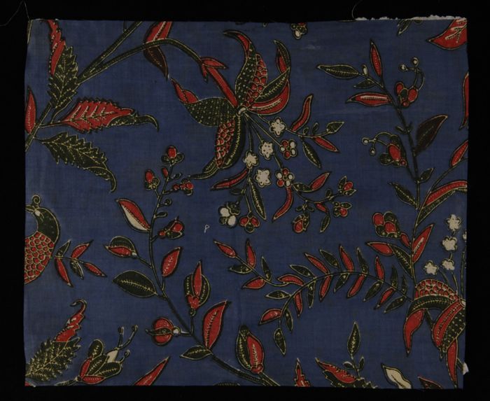 Stofstaal, katoen met batik dessin met bloemranken i...