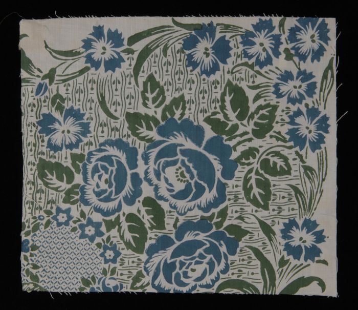 Stofstaal, katoen met dessin met bloemen in twee tin...