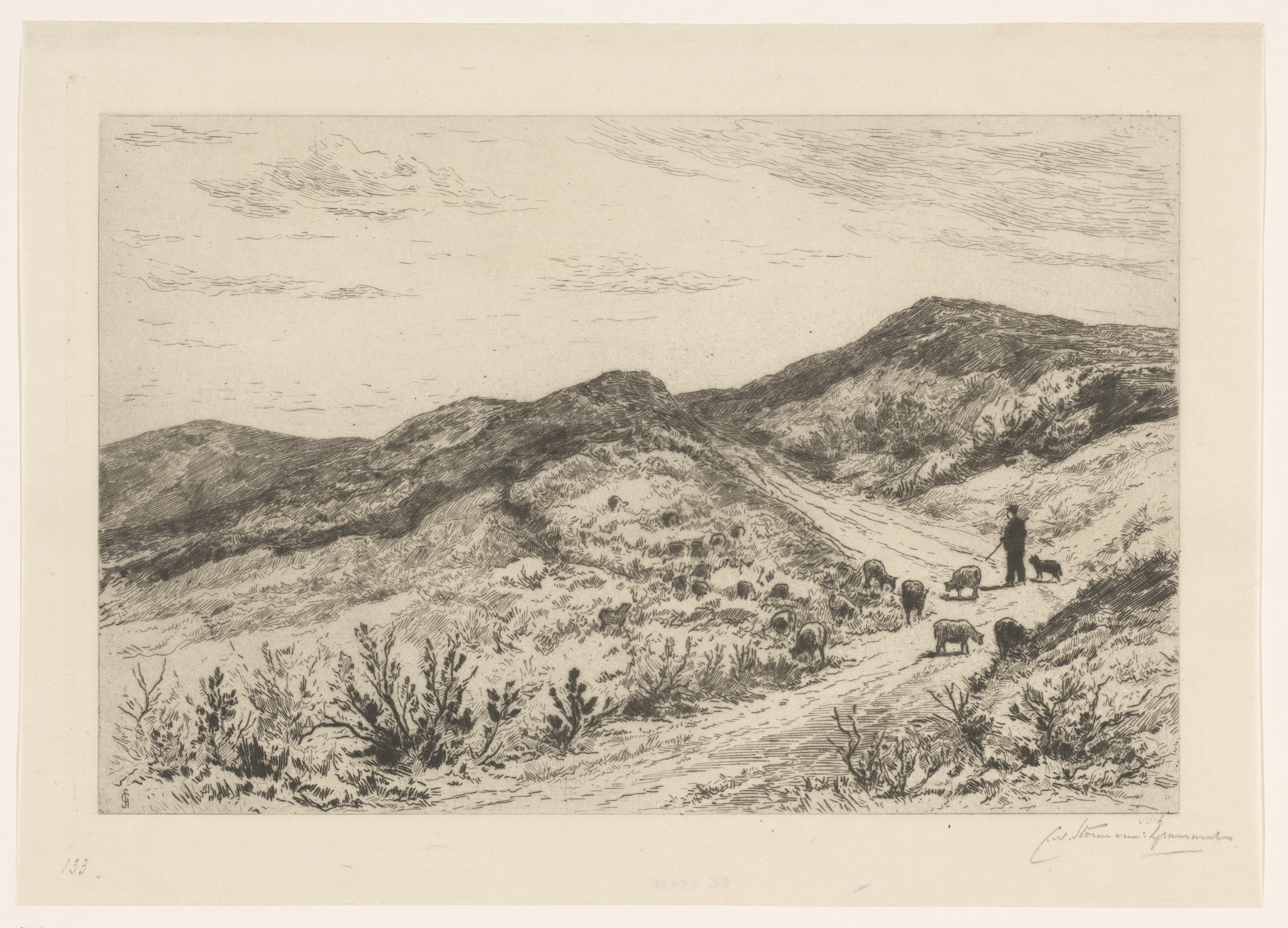 Heidelandschap met schaapskudde bij Worth-Rheden
