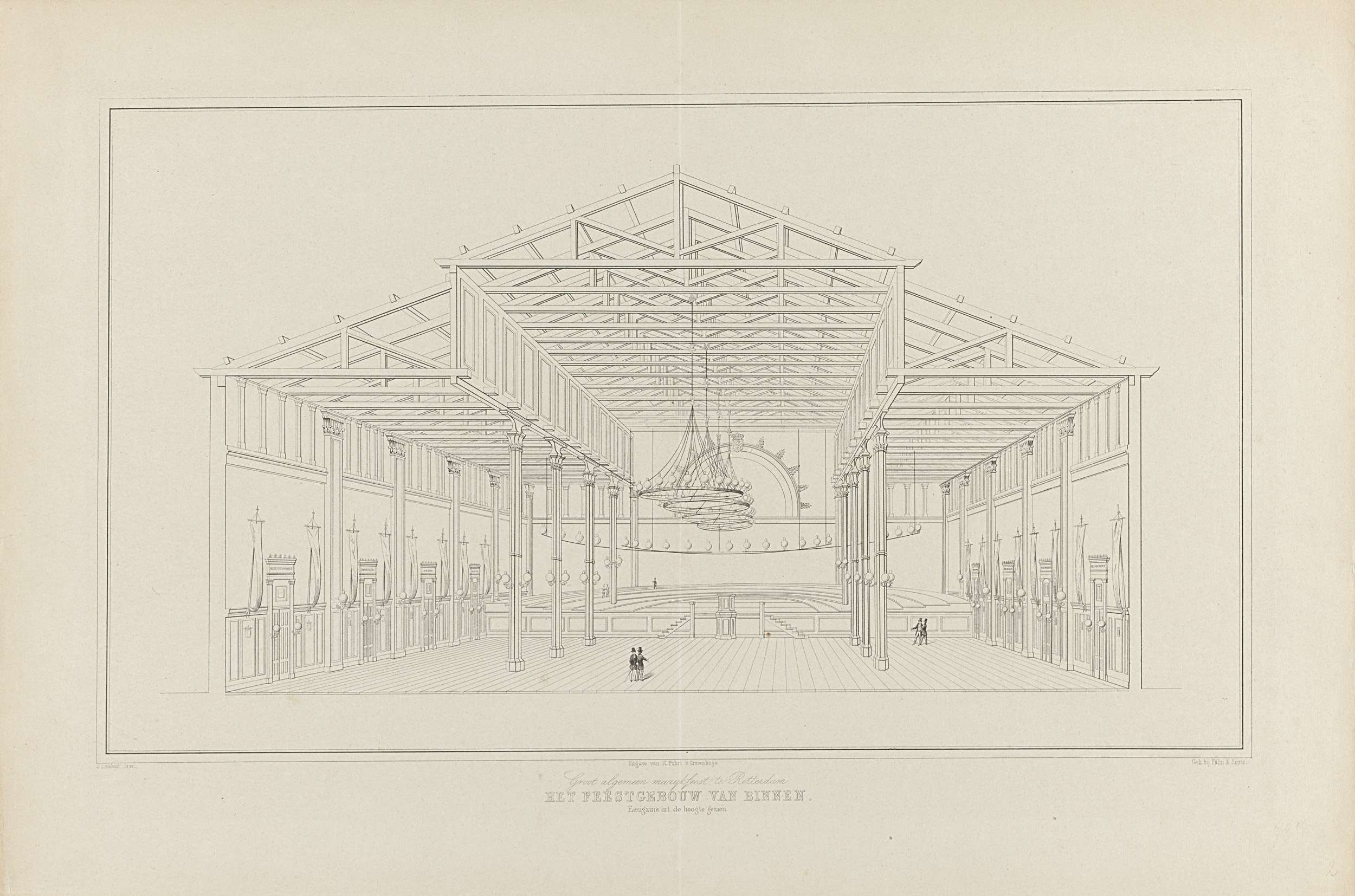 Interieur van het Feestgebouw waar het muziekfeest i...