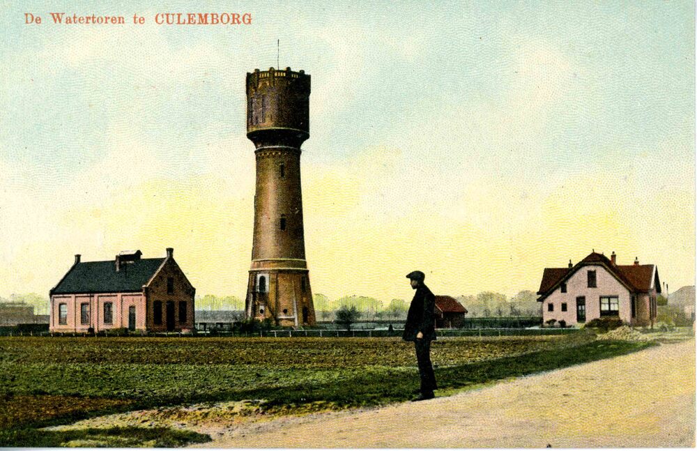 Ansichtkaart, voorstellende de watertoren aan de Rij...