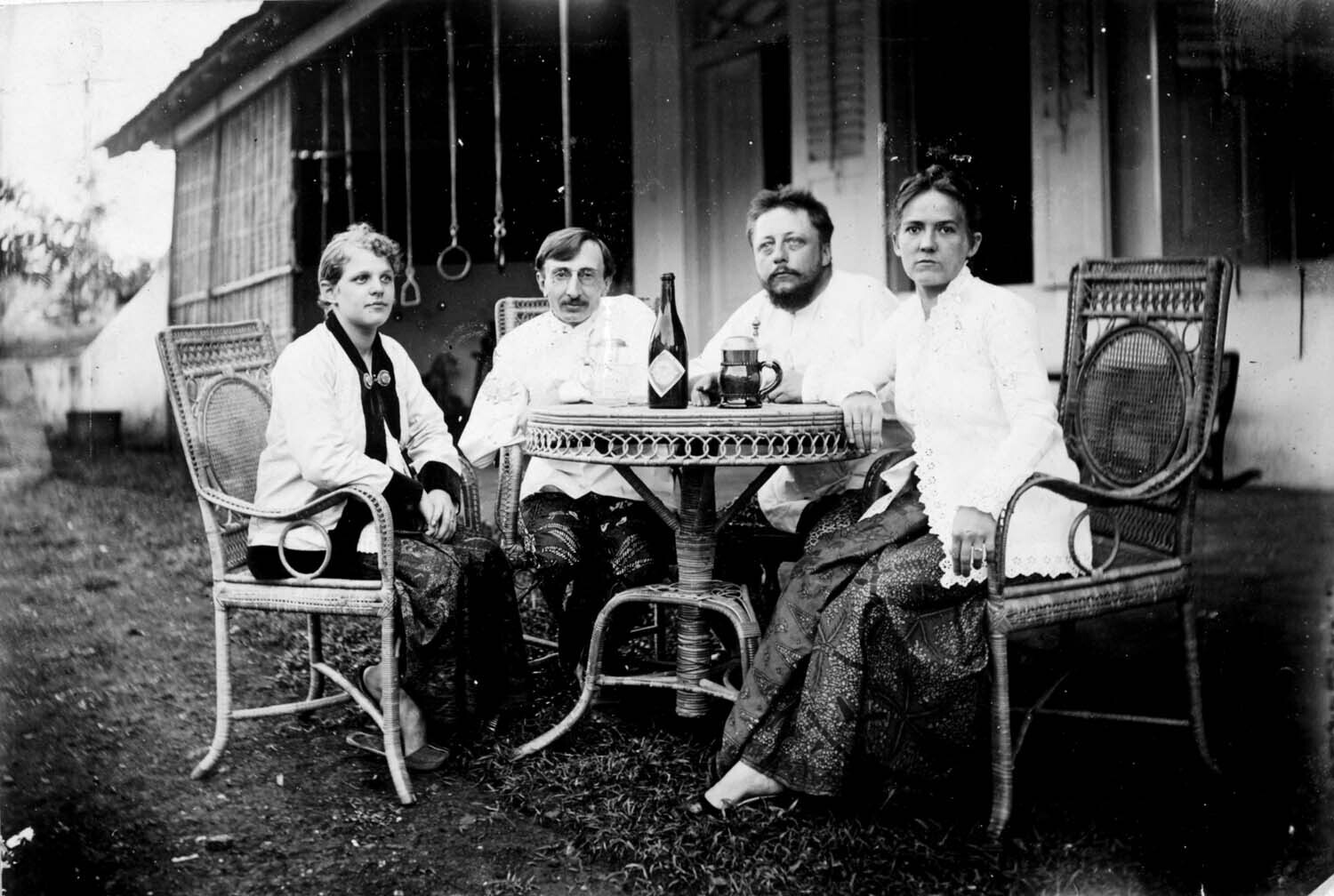 Eugenie poseert met kinderen Wimmie, Johan en Eugeni...