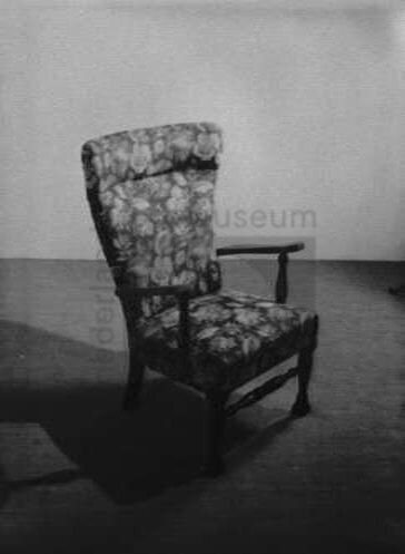 hoge donkere fauteuil met open armleggers