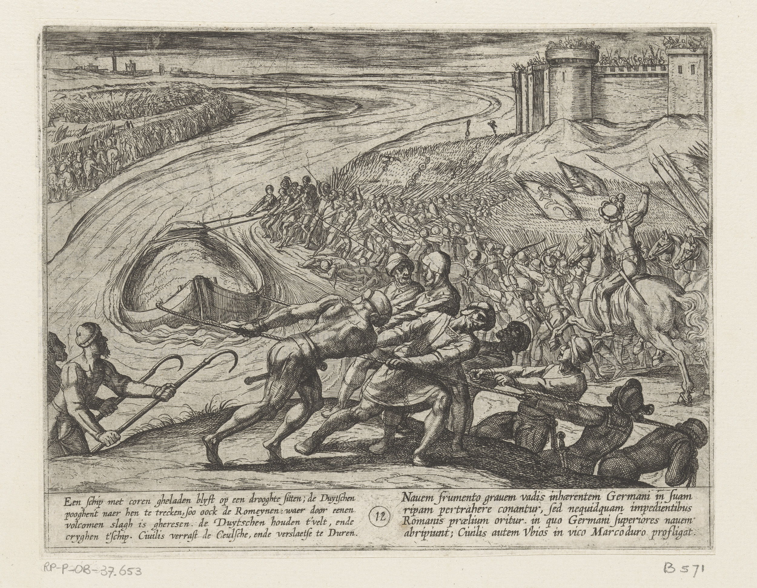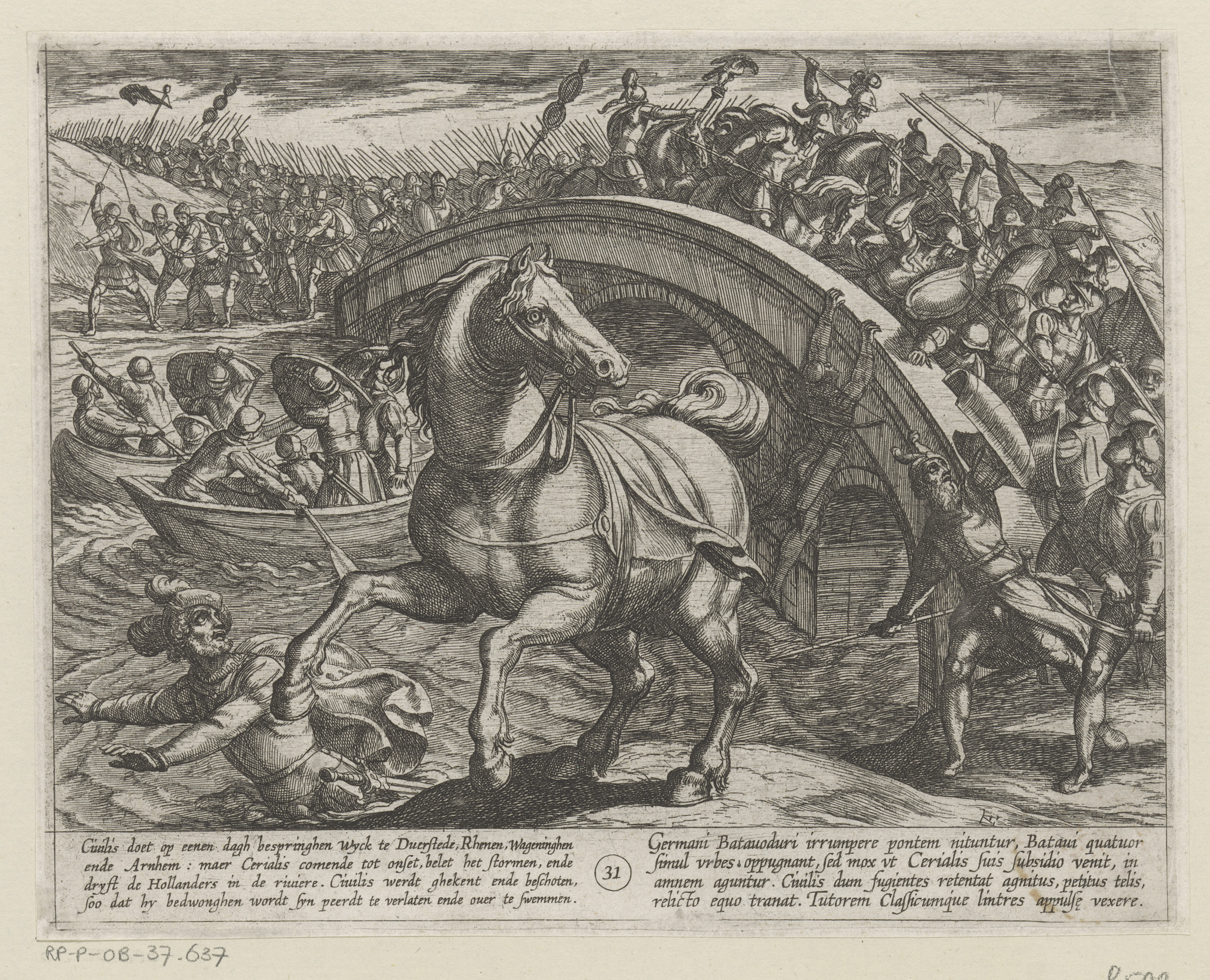 Julius Civilis gedwongen af te stijgen en zwemmend d...