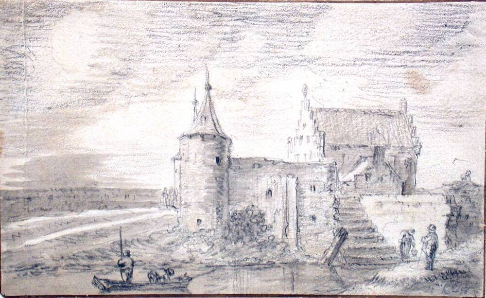 Loevestein vanuit het noorden, kopergravure