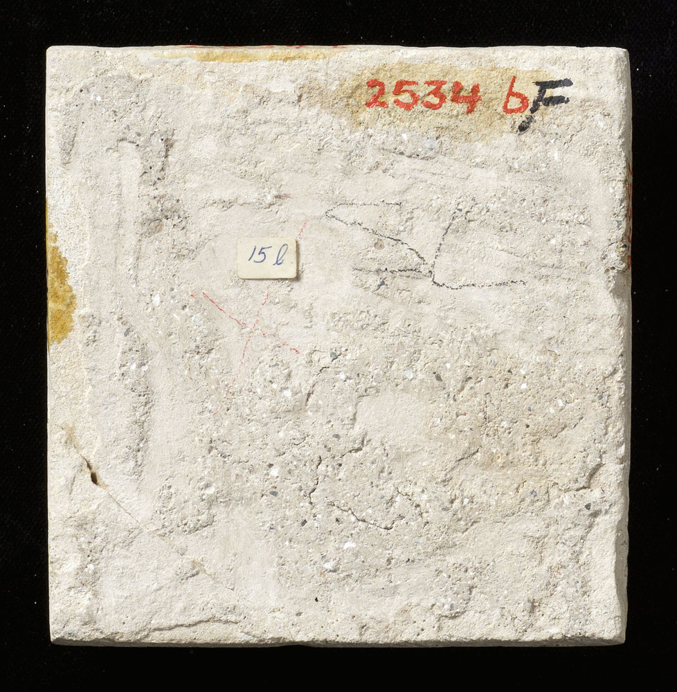 Tegel van keramiek met tinglazuur, voorstellende: wa...