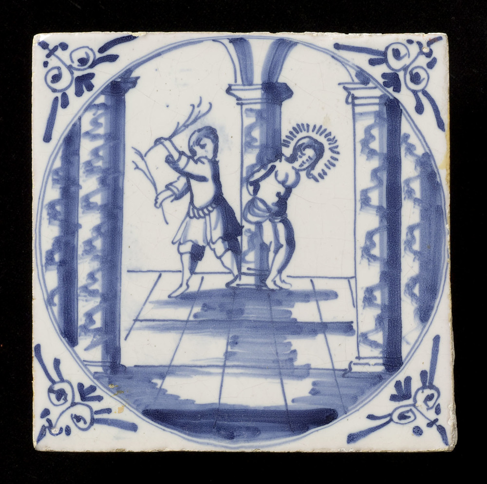 tegel van aardewerk met tinglazuur, voorstellende: h...