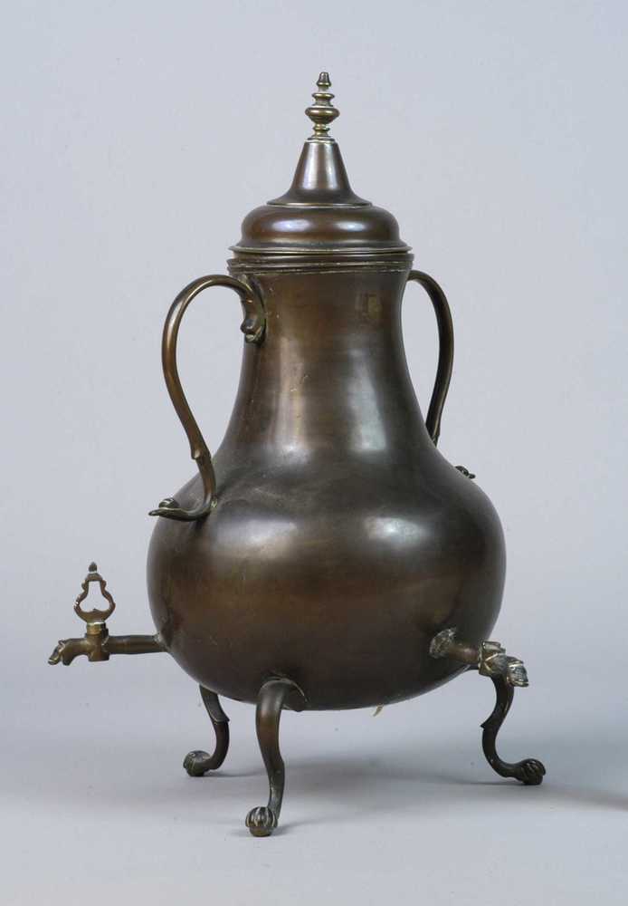 koffiepot van geel koper, 3 kraans, 19e eeuw