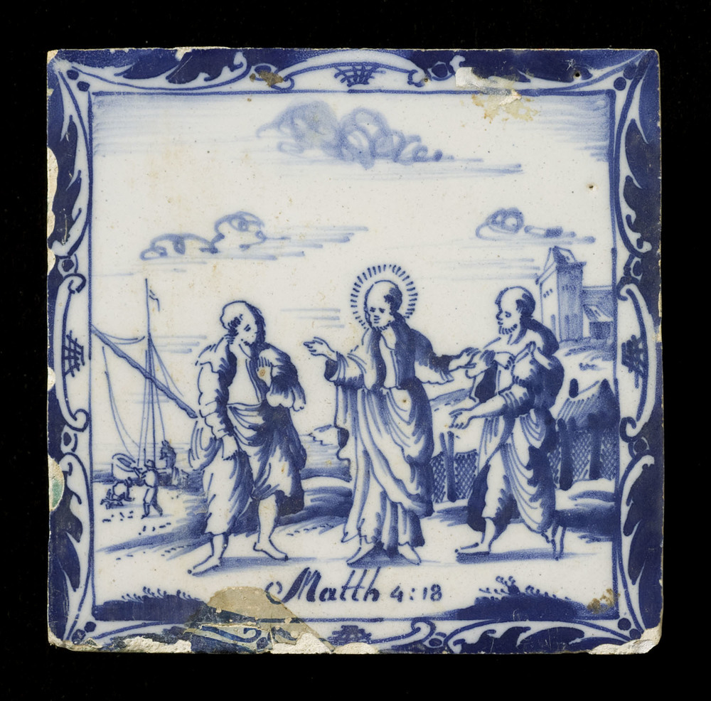 tegel van aardewerk met tinglazuur, voorstellende: h...