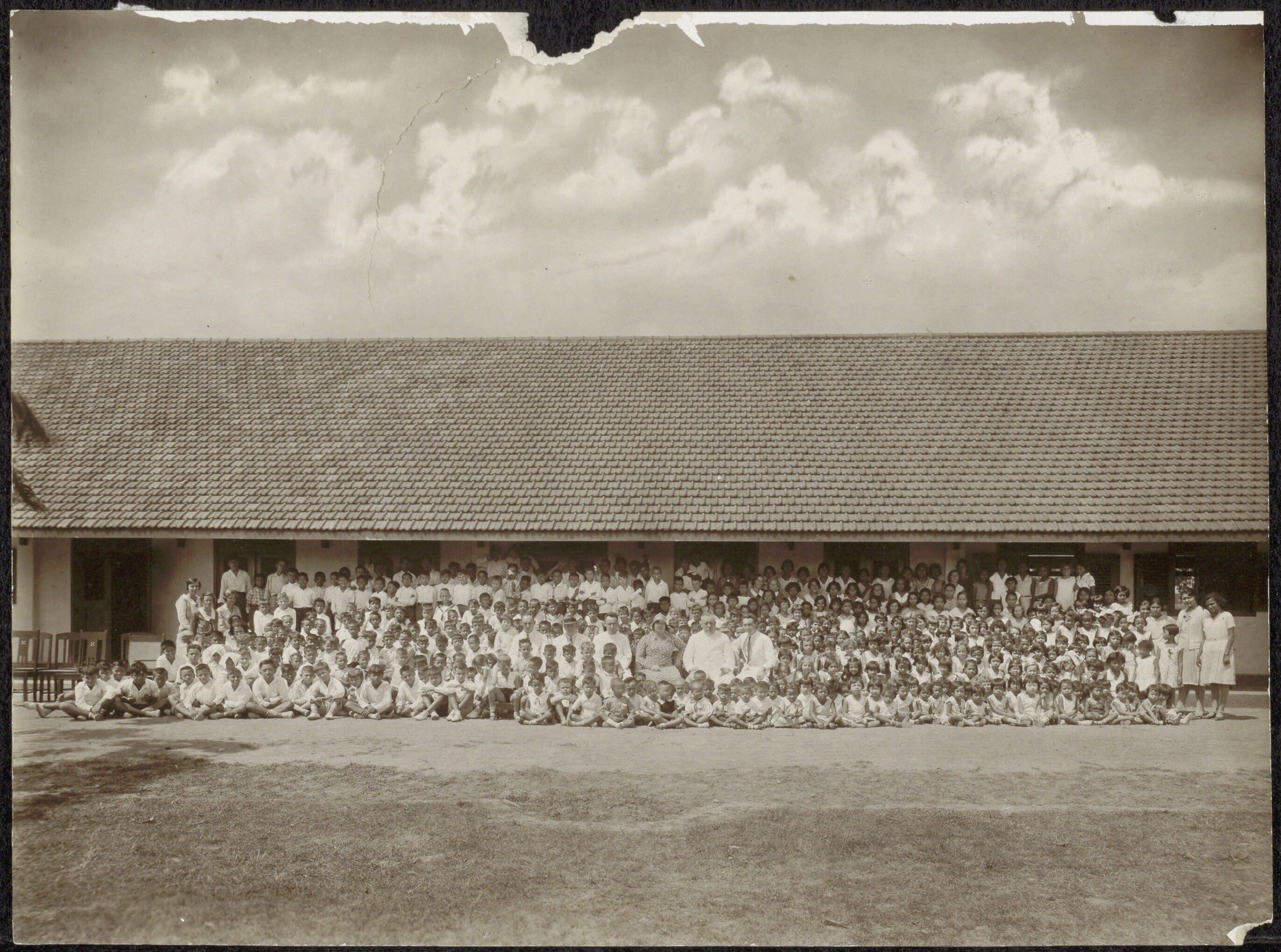 Groepsportret, vermoedelijk van schoolkinderen met h...