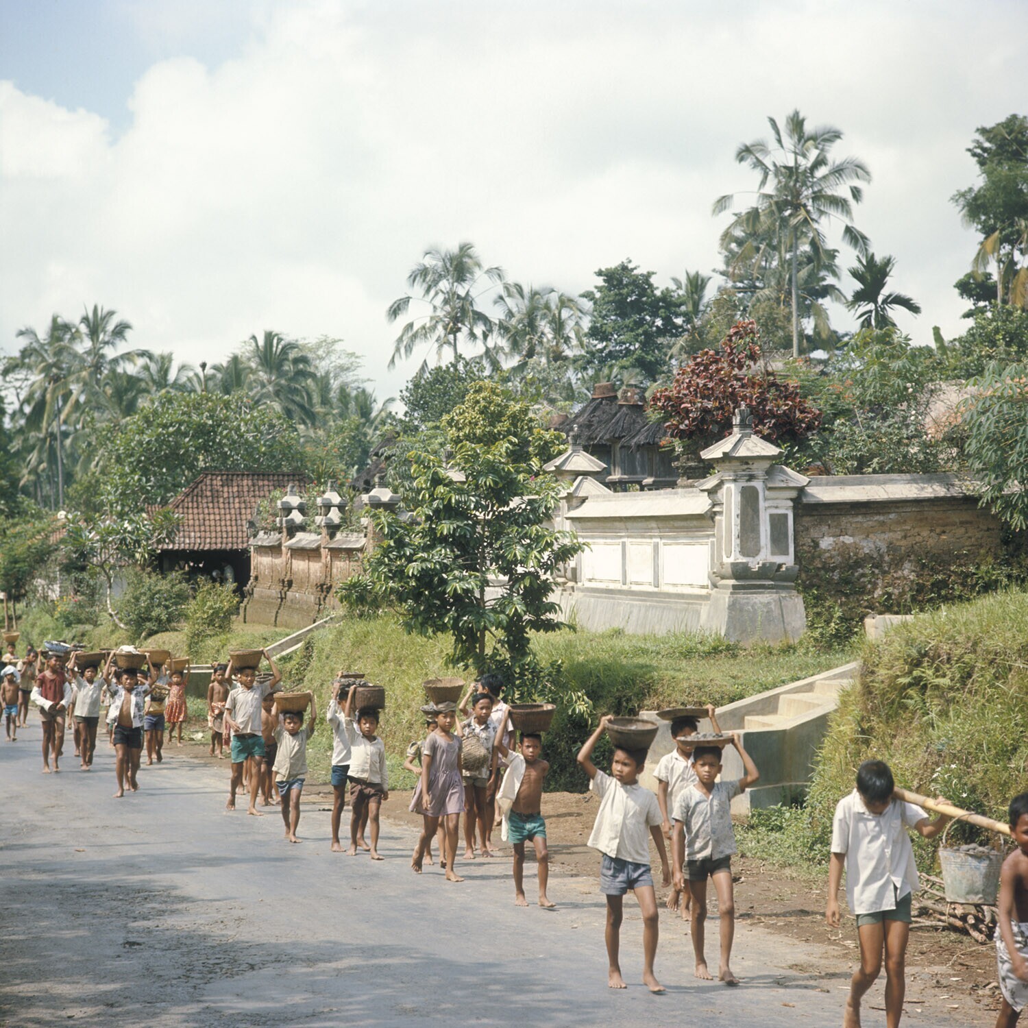 Hanengevecht in kampong Besakih, Bali. De volgende r...