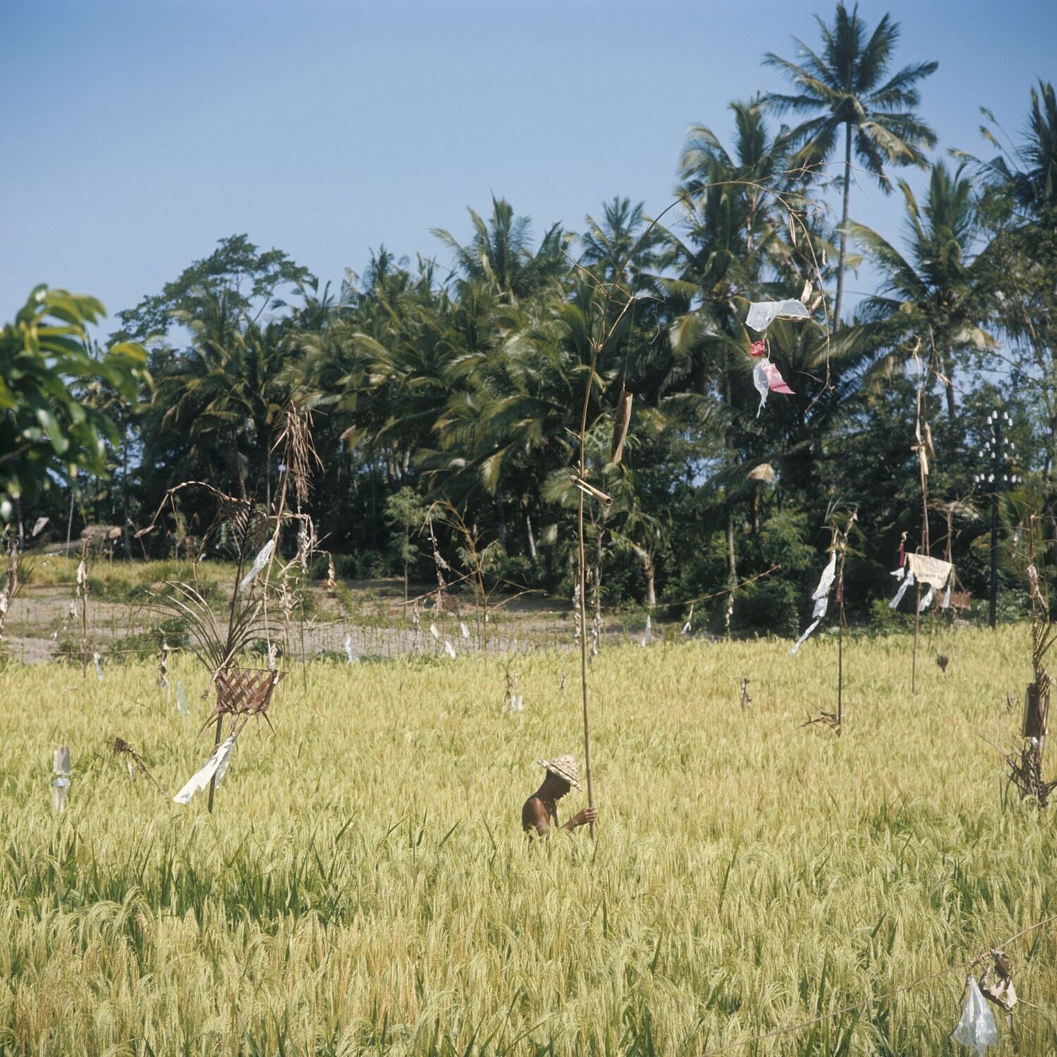 Rijstterrassen met vogelverschikkers, bij Sanur, Bali