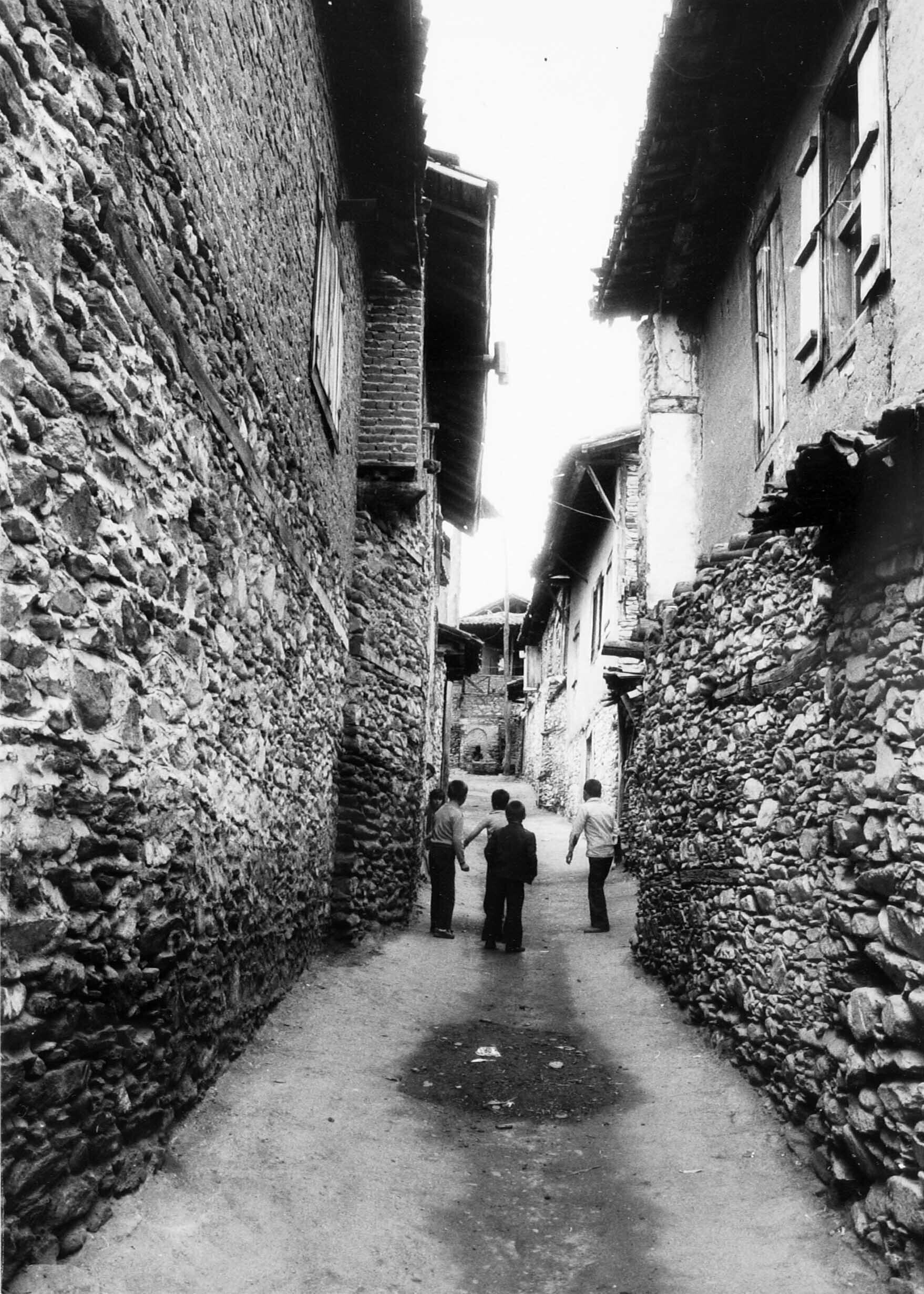 Izmir, het dorp Birgi. Spelende jongens in een nauw ...