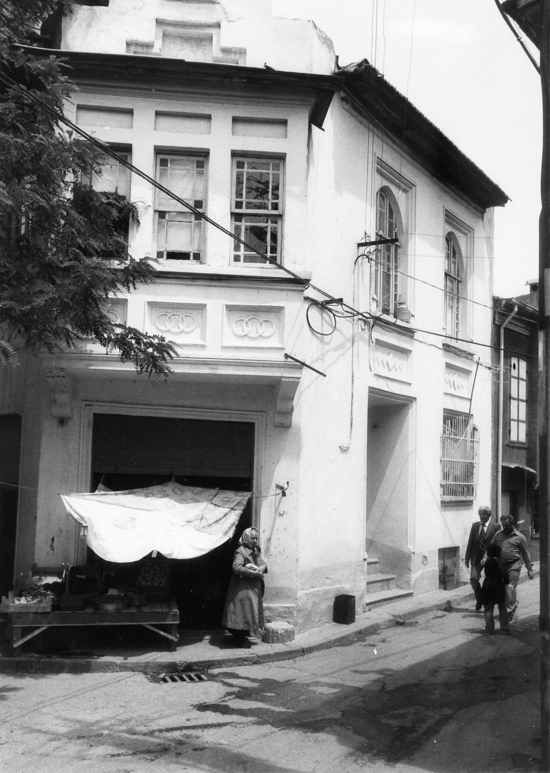 Izmir, straatbeeld. Met rechts-achter een huis met G...