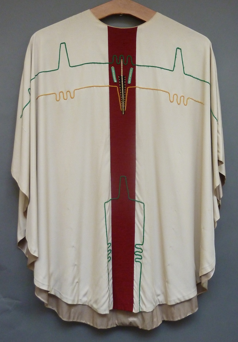 Albe, onderrand en manchetten geborduurd met vissen,...