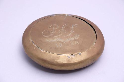 Messing tabaksdoos met opschrift 'P.S.S.'