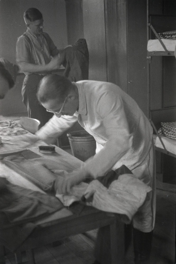 Een militair is met de was bezig.