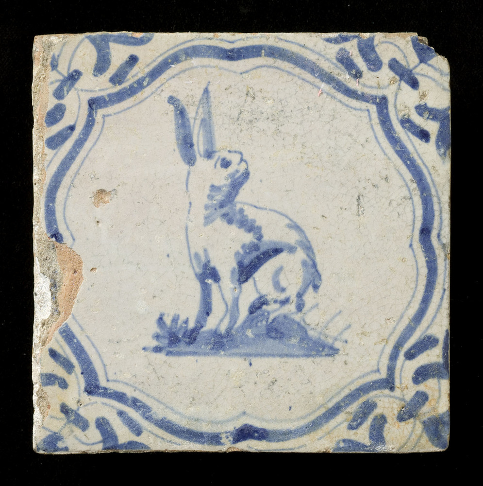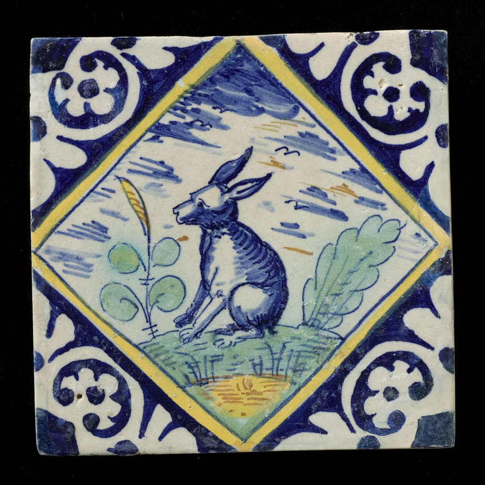 Tegel in tinglazuur, voorstellende konijn, gemaakt i...