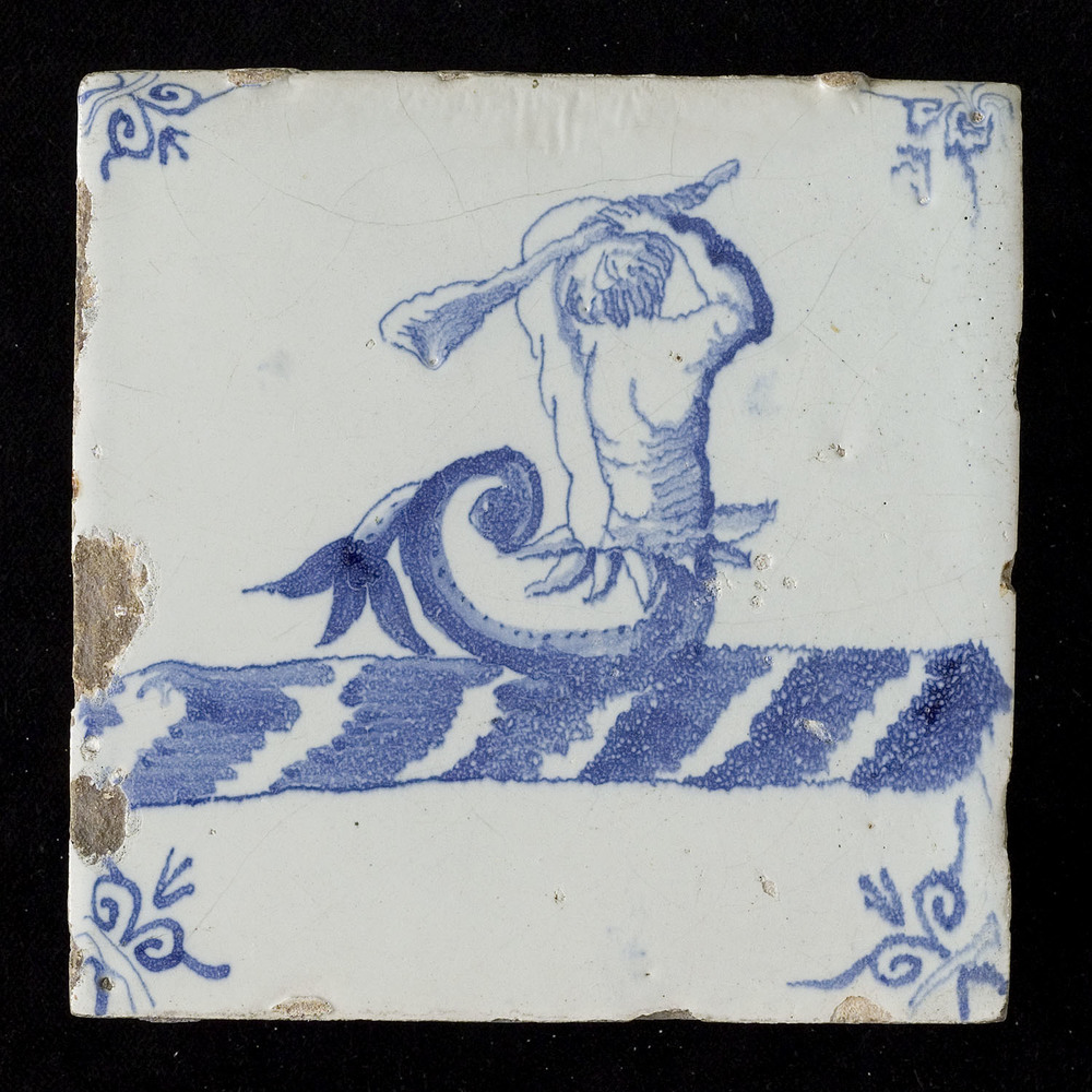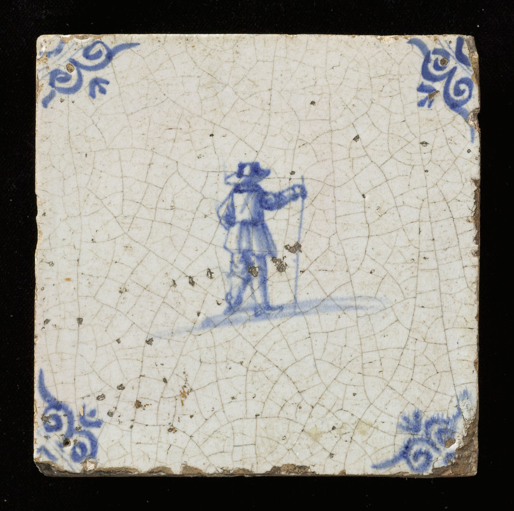 Tegel van keramiek, gemaakt in Nederland ca. 1660-1700