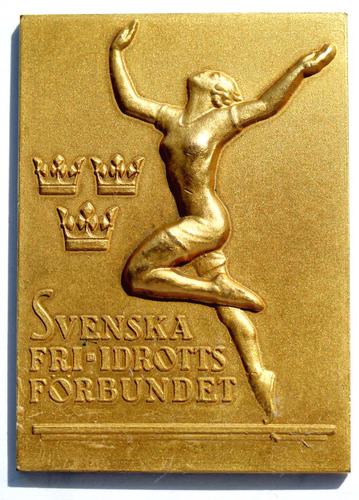 Bronzen herinnering penning/plaquette, Zweedse Atlet...