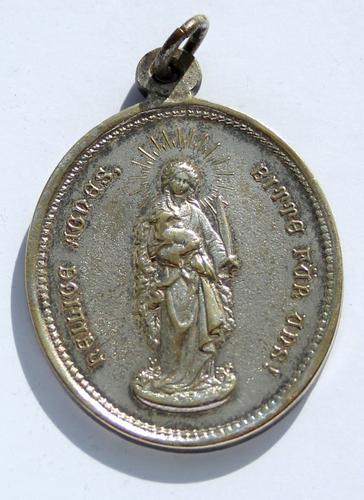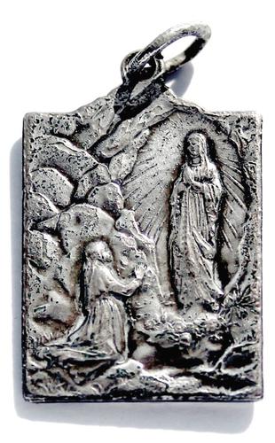Nikkelen religieuze draagpenning Maria te Lourdes.