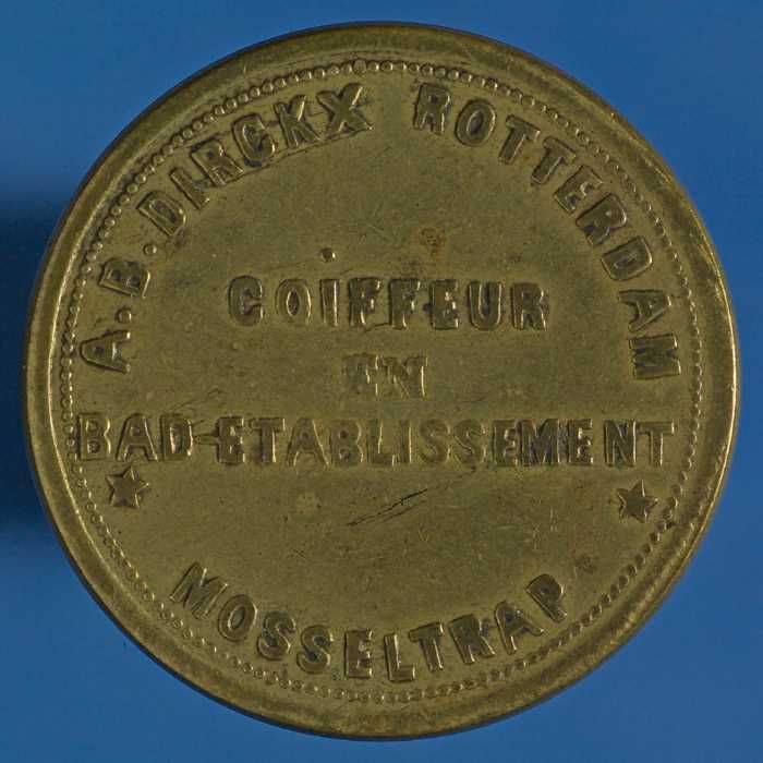 Huismunt van A.B. Dirckx, kapper te Rotterdam