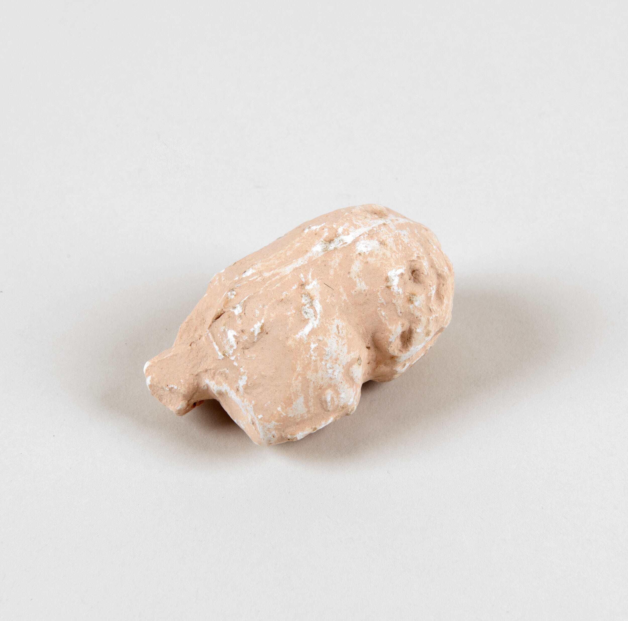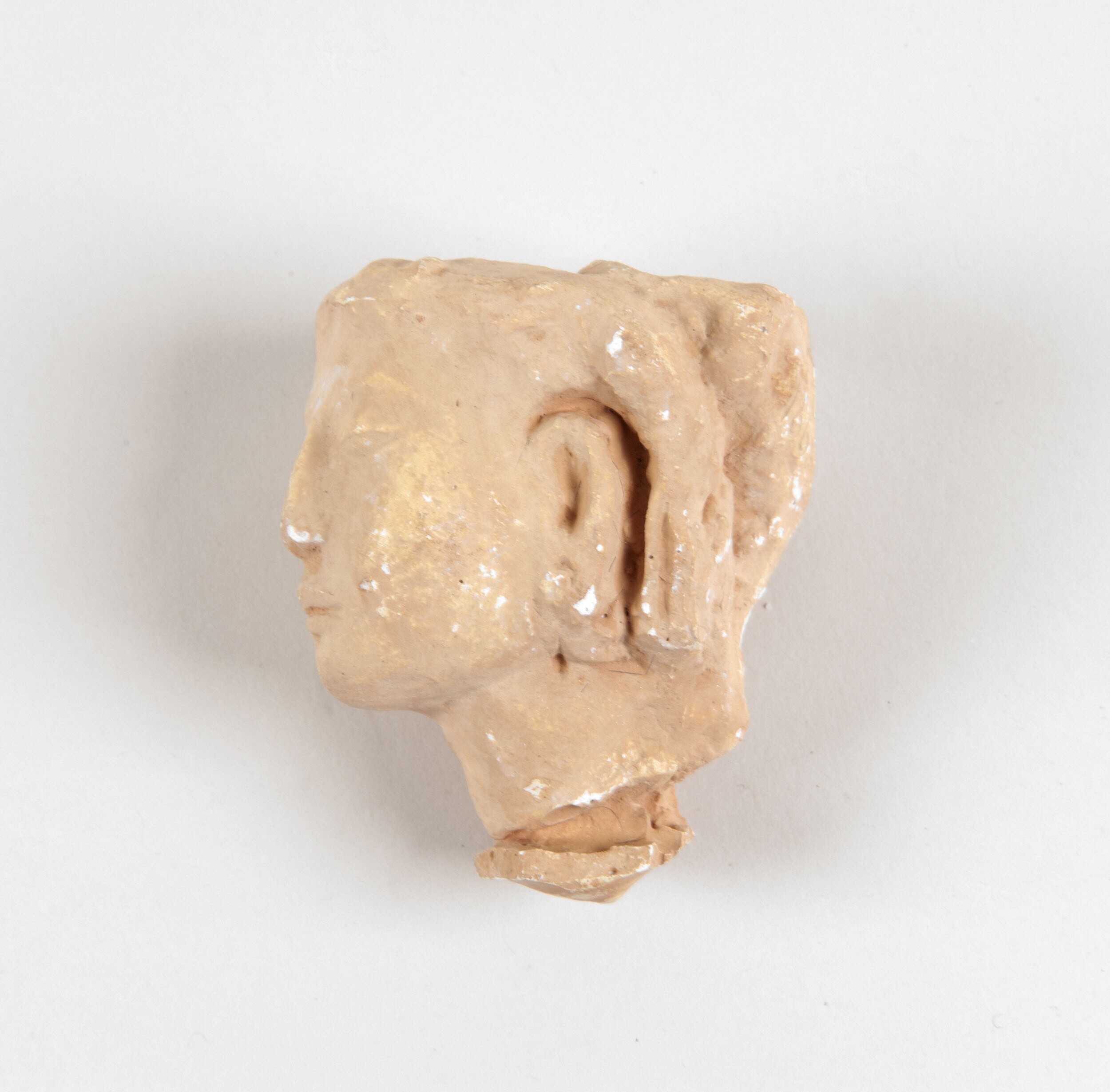 Gipsafgietsel terracottakop met haarbundel en edele ...