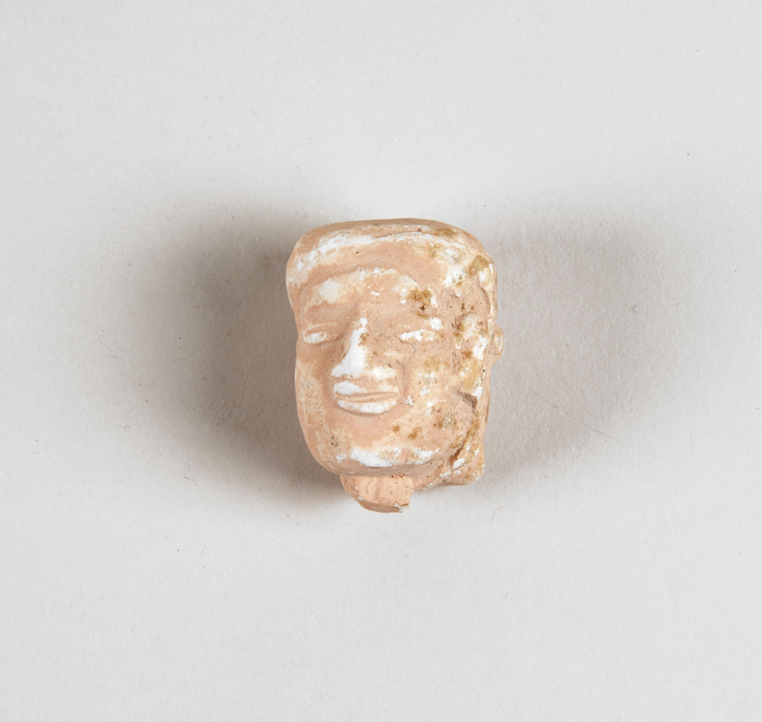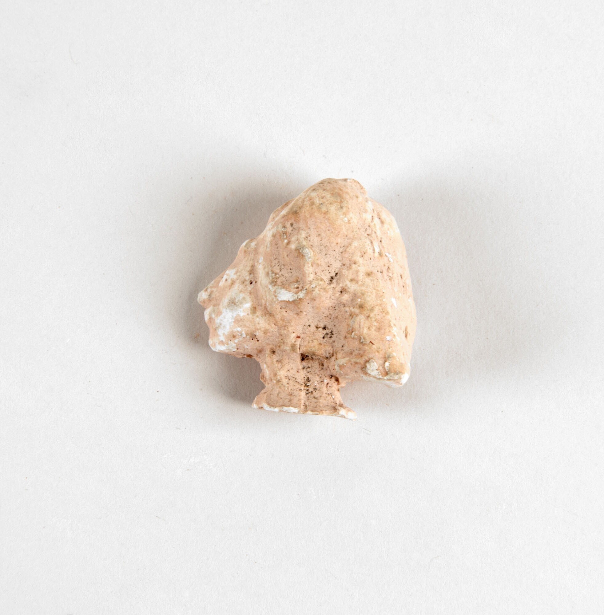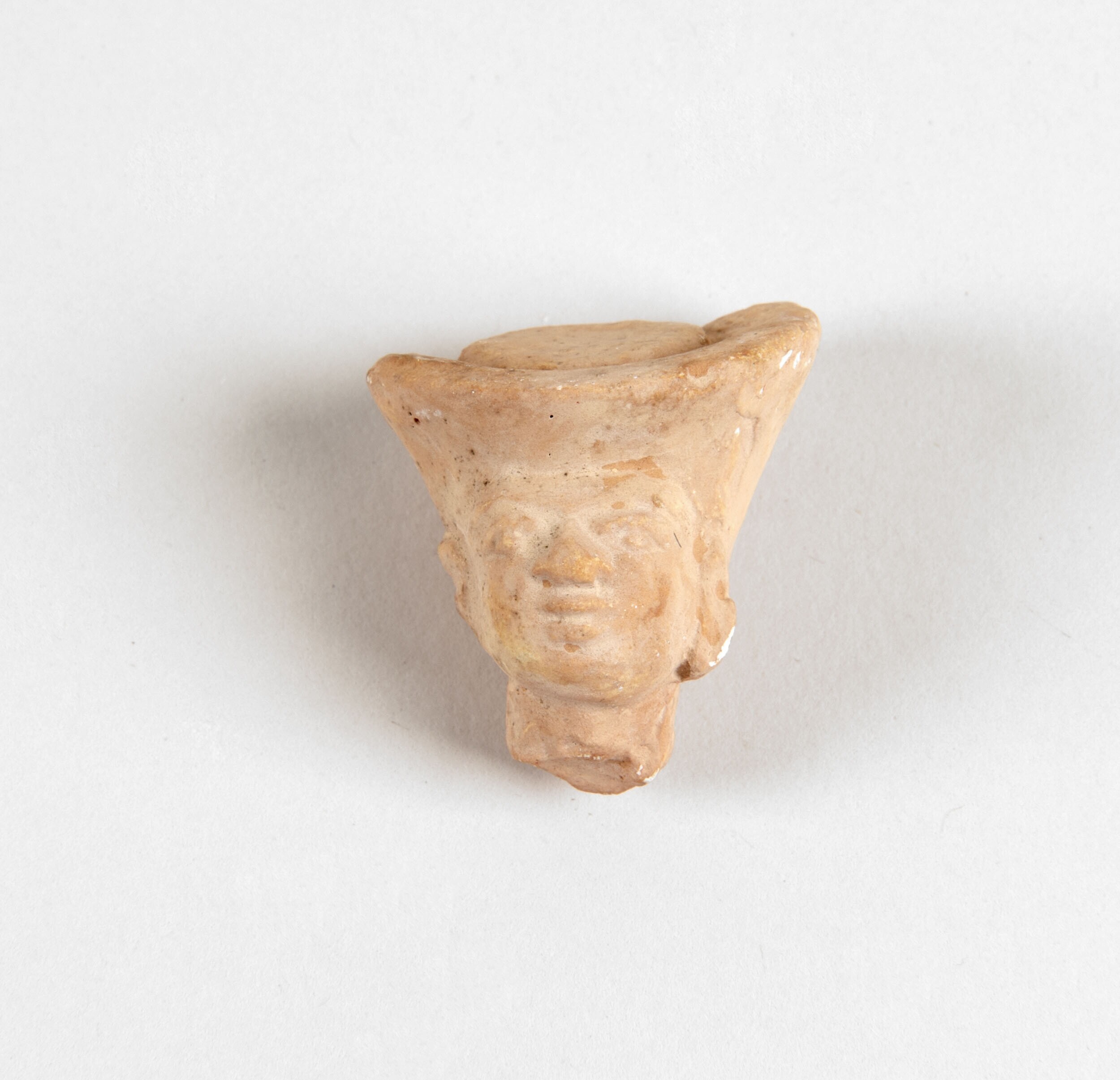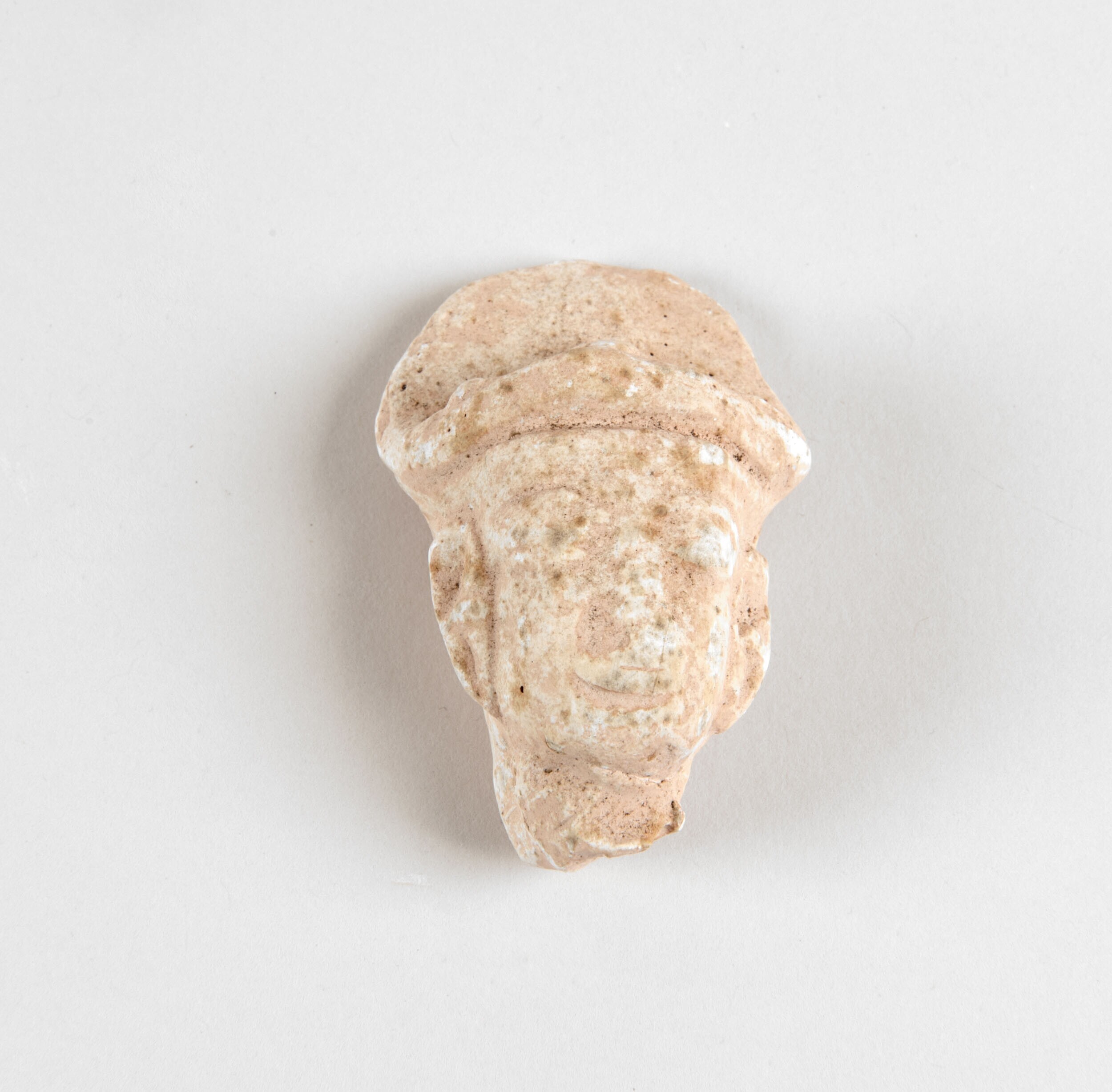 Gipsafgietsel Terracottakop met puntmuts en kleine s...